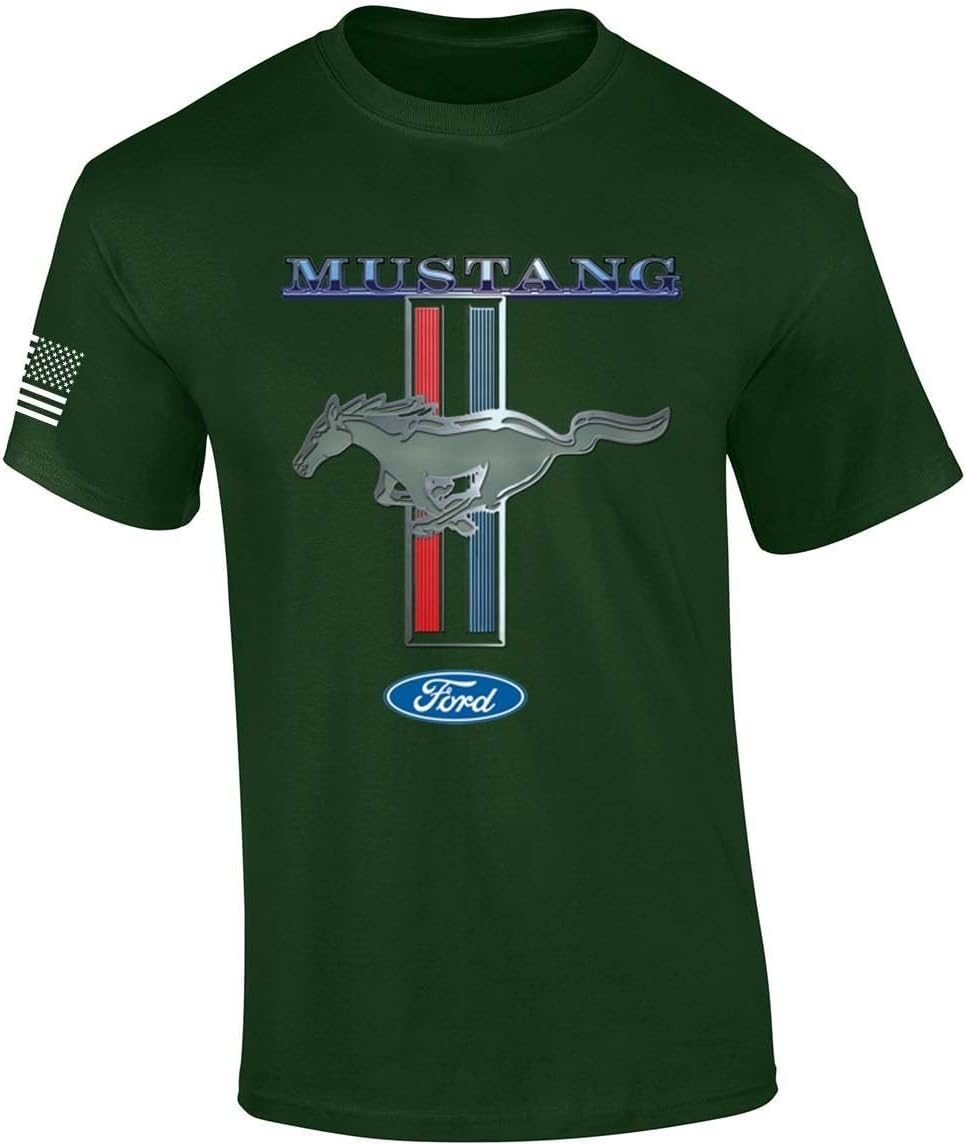 FINT RYIDES Ford Mustang T-shirt Pony & Stripes Logo Classic Retro Design Racing Performance Car Enthusiast Garage Tee