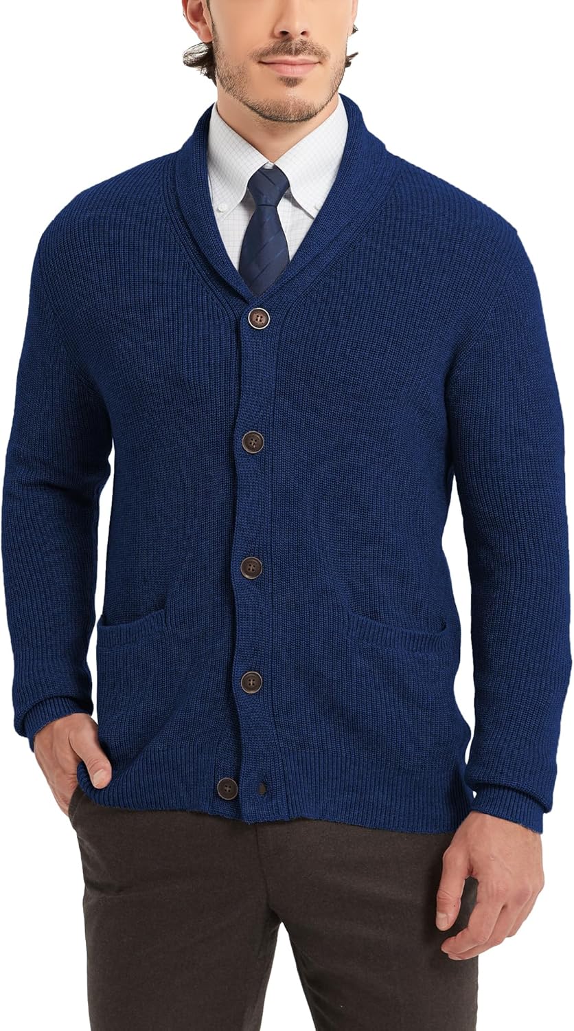 Kallspin Men's Wool Blend Shawl Collar Cardigan Sweater
