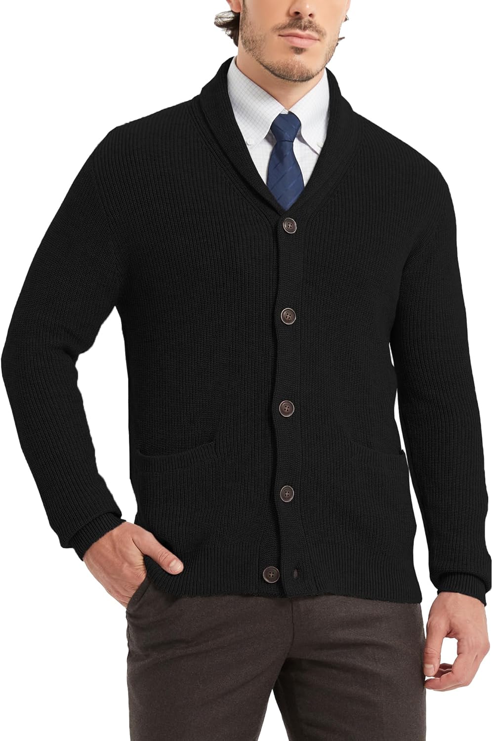 Kallspin Men's Wool Blend Shawl Collar Cardigan Sweater