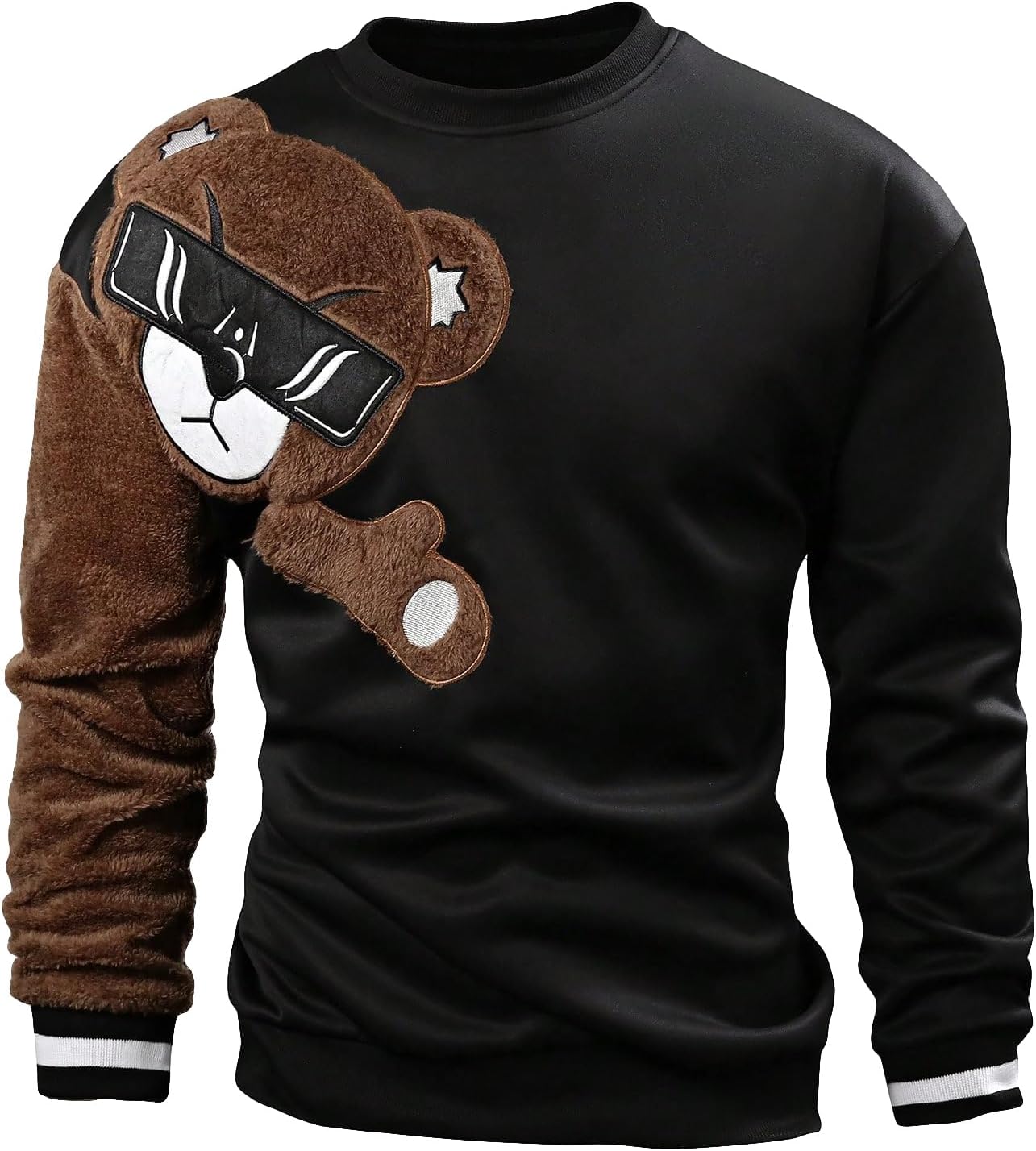 Made of slight stretch, smooth to skin fabric, bringing you comfortable wear feelingFeatures: fuzzy, bear pattern, long sleeve, drop shoulder, round neck, pullover sweatshirtEasy pair any clothes. You can pair it with sweatpants, jeans, sneakers, boots for a chic look in spring, autumn and winterSuitable for outdoor, park, street, going out, weekend and casual dailywear
