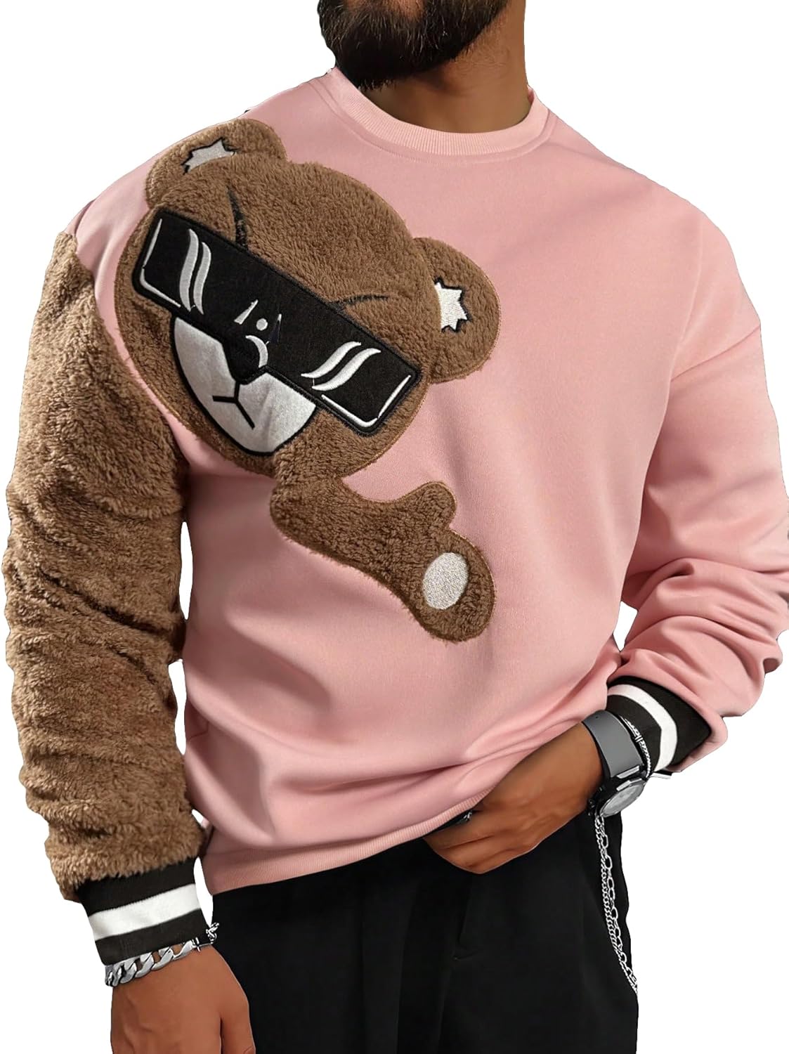 Made of slight stretch, smooth to skin fabric, bringing you comfortable wear feelingFeatures: fuzzy, bear pattern, long sleeve, drop shoulder, round neck, pullover sweatshirtEasy pair any clothes. You can pair it with sweatpants, jeans, sneakers, boots for a chic look in spring, autumn and winterSuitable for outdoor, park, street, going out, weekend and casual dailywear