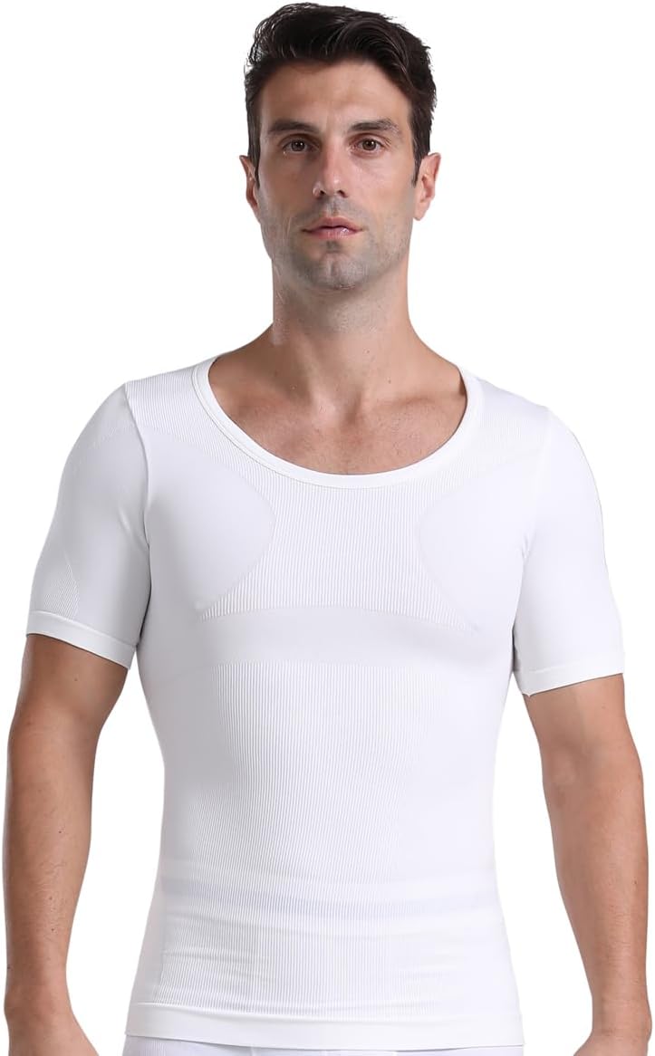 WEAR UNDER ANY CLOTHES: Invisible under all your clothes, such as suits, formal dress shirts, workout shirts, t-shirts, polos and sweaters. Wear it anytime, anywhere, look inches smaller and pounds thinner. This Compression Shirt is the choice for body shaping, definitely a secret weapon that brings your self-esteem back.HIGH QUALITY NYLON AND SPANDEX TO STAY SHAPE: This body shaper is made of high-end Nylon and Spandex, there must not be even a single sloppy stitch, the seams are very sturdy, unbreakable even under strong pull and won't lose its elasticity after use. Seamless Design makes the slimming Tank Tops the ideal undershirt. Wear this firming tee flattens your chest, stomach, back fat.This male Shapewear for zumba, yoga, gym, fitness, running, jogging, hiking, cycling and much more sports.HOW TO WEAR: You may not be comfortable when you wear this compression shirt for the first time, it will be a tight fit. But you'll get used to it after a week. We strongly suggest you to gradually prolong the time of wearing until you get it. Wearing our slimming shaper , healthy eating and scientific exercise, you'll be successful in weight loss.