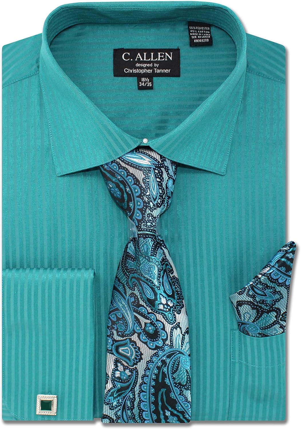 45% Cotton, 55% PolyesterDress Shirt and Tie, Hanky, Cufflinks combo - Save Your Time! our designers have selected the best combination of colors and patterns to save your time.REGULAR FIT - our dress shirts are regular fit spread collar with front button Closure, long sleeves, french cuffs.SEASON - All Year Round Basics. dress shirts are made from superior quality, ultra-breathable fabric.Season: All Year Round Basics