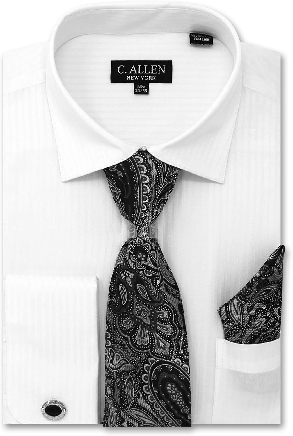 45% Cotton, 55% PolyesterDress Shirt and Tie, Hanky, Cufflinks combo - Save Your Time! our designers have selected the best combination of colors and patterns to save your time.REGULAR FIT - our dress shirts are regular fit spread collar with front button Closure, long sleeves, french cuffs.SEASON - All Year Round Basics. dress shirts are made from superior quality, ultra-breathable fabric.Season: All Year Round Basics