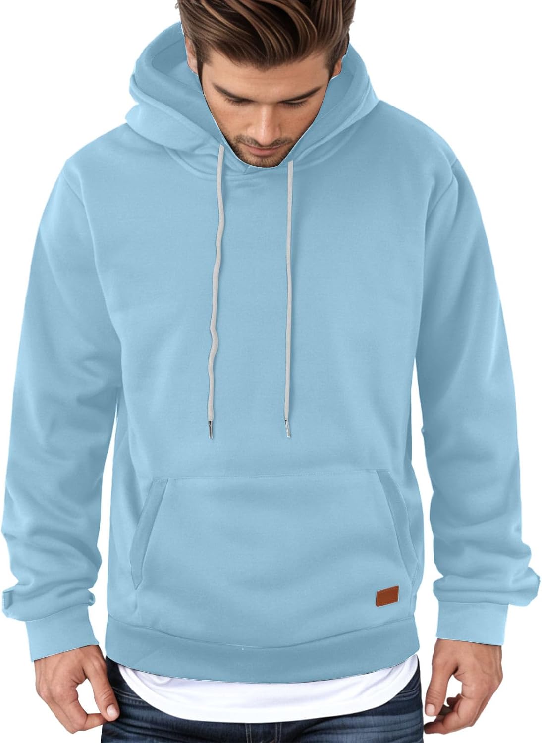 FINT RYIDES Pullover Hoodies For Men Solid Long Sleeve Drawstring Hooded Sweatshirt Trendy 2025 New Hoodies With Pockets