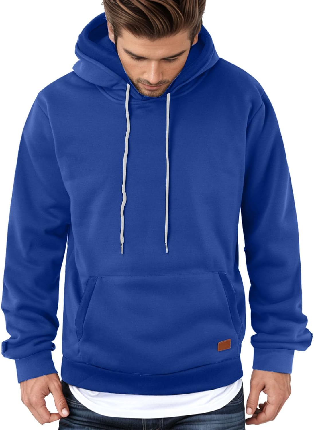 FINT RYIDES Pullover Hoodies For Men Solid Long Sleeve Drawstring Hooded Sweatshirt Trendy 2025 New Hoodies With Pockets