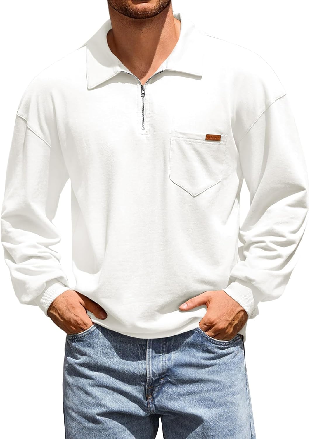 FINT RYIDES Yousify Mens Casual Quarter Zip Jackets Lightweight Cotton Loose Fit Pullvoer Stylish Fall Jacket With Pocket